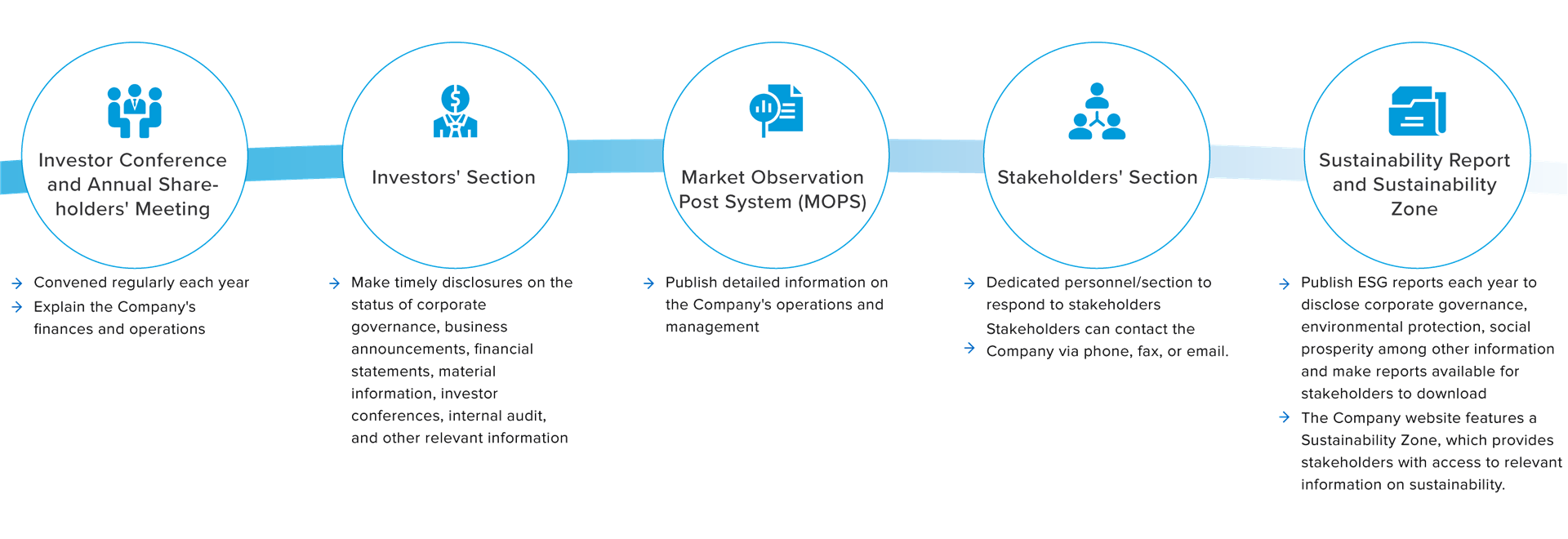 investor relations, a special zone for corporate sustainability, and a special zone for stakeholders, etc., in order to continue to strengthen the disclosure of information, to respect the rights and interests of all stakeholders, and to achieve effective communication.