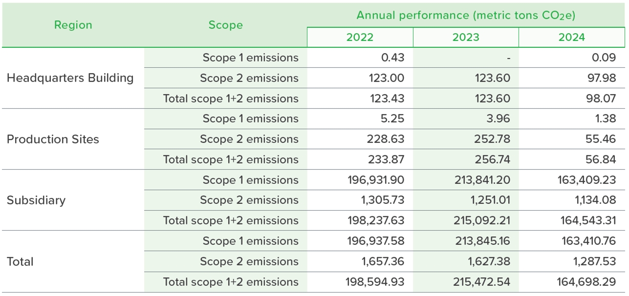 2: The emission factor data for 2024 is sourced from the announcement by the Bureau of Energy, MOEA, stating that the carbon emission factor for electricity in 2023 is 0.494 kg CO2e/kWh, with a Global