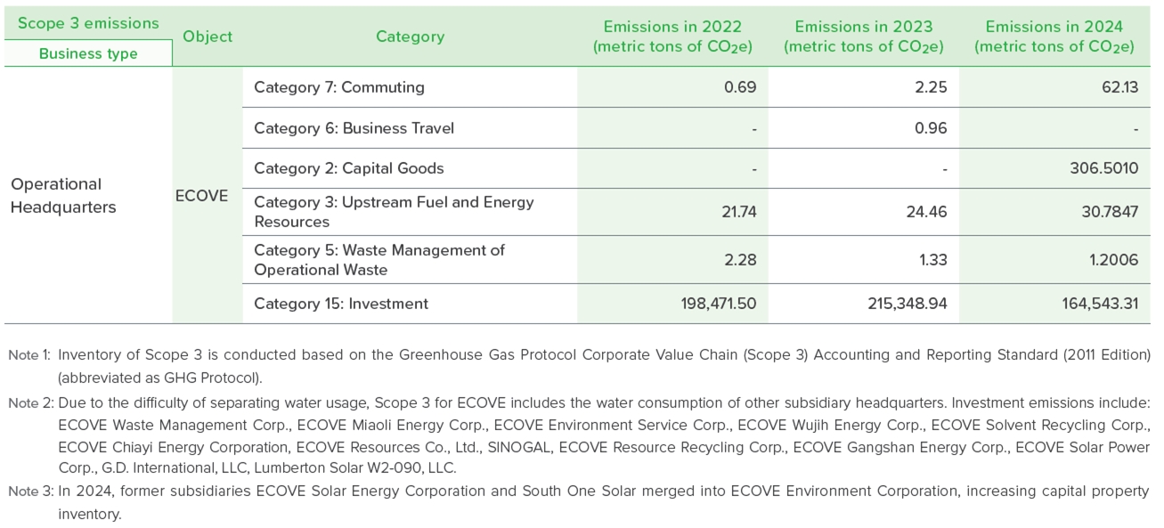 3: Due to the difficulty of disaggregating electricity consumption, Scope 2 emissions for ECOVE include the electricity consumption of its subsidiary headquarters as well.