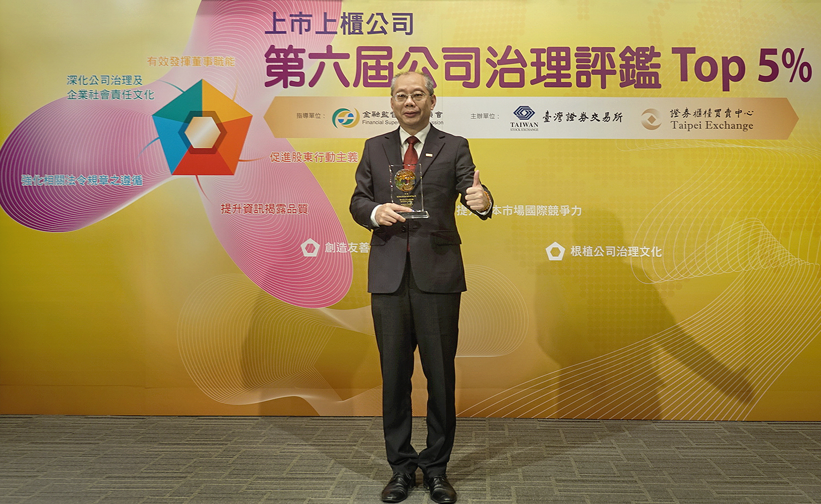 ECOVE, the envision future of which is the most reliable of industry-leading resource cycling services, has honored with top 5% award for five successive years. The five awards demonstrate that ECOVE obeys the laws and regulations and voluntarily enhances mechanism of corporate governance. In the coming days, “the most reliable” ECOVE will continue to strengthen corporate governance and transparency, improve corporation constitution, safeguard shareholder rights, and promote environmental and corporate sustainable development.![]()