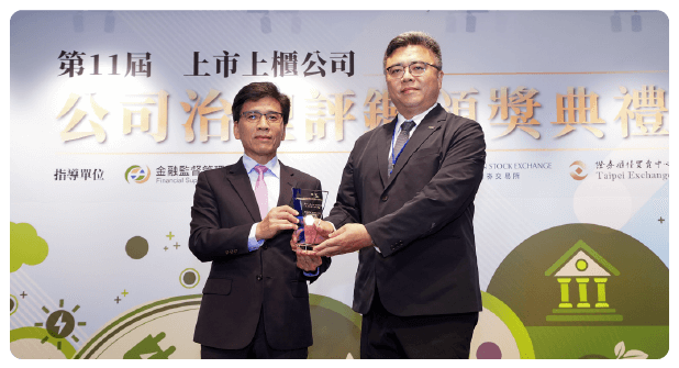 ECOVE has been awarded the top 5% in corporate governance evaluation for eleven consecutive years, with the award presented by Director Peng Jinlong of the Financial Supervisory Commission, and General Manager Diao Xiuhua representing the company to receive the award.
