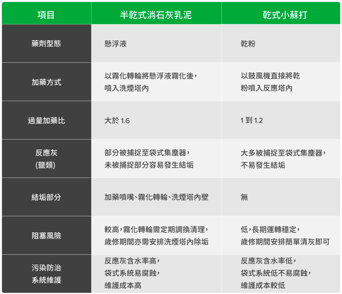 半乾式消石灰乳泥與乾式小蘇打製程差異
